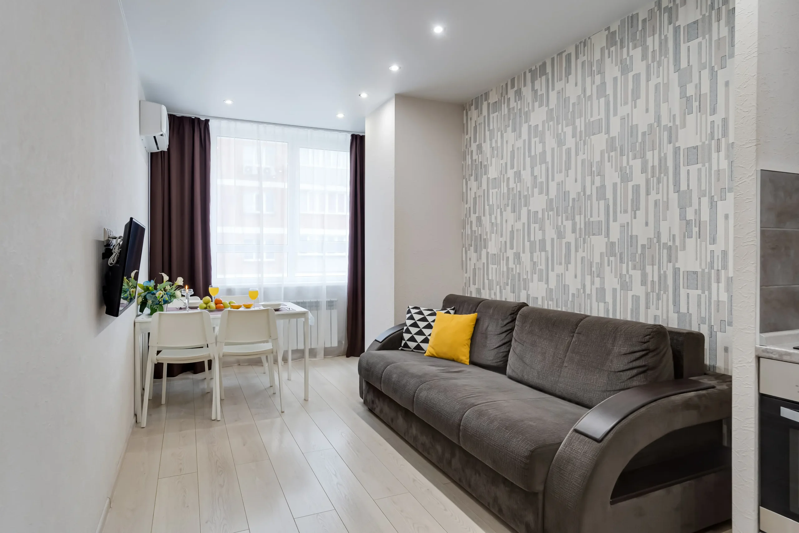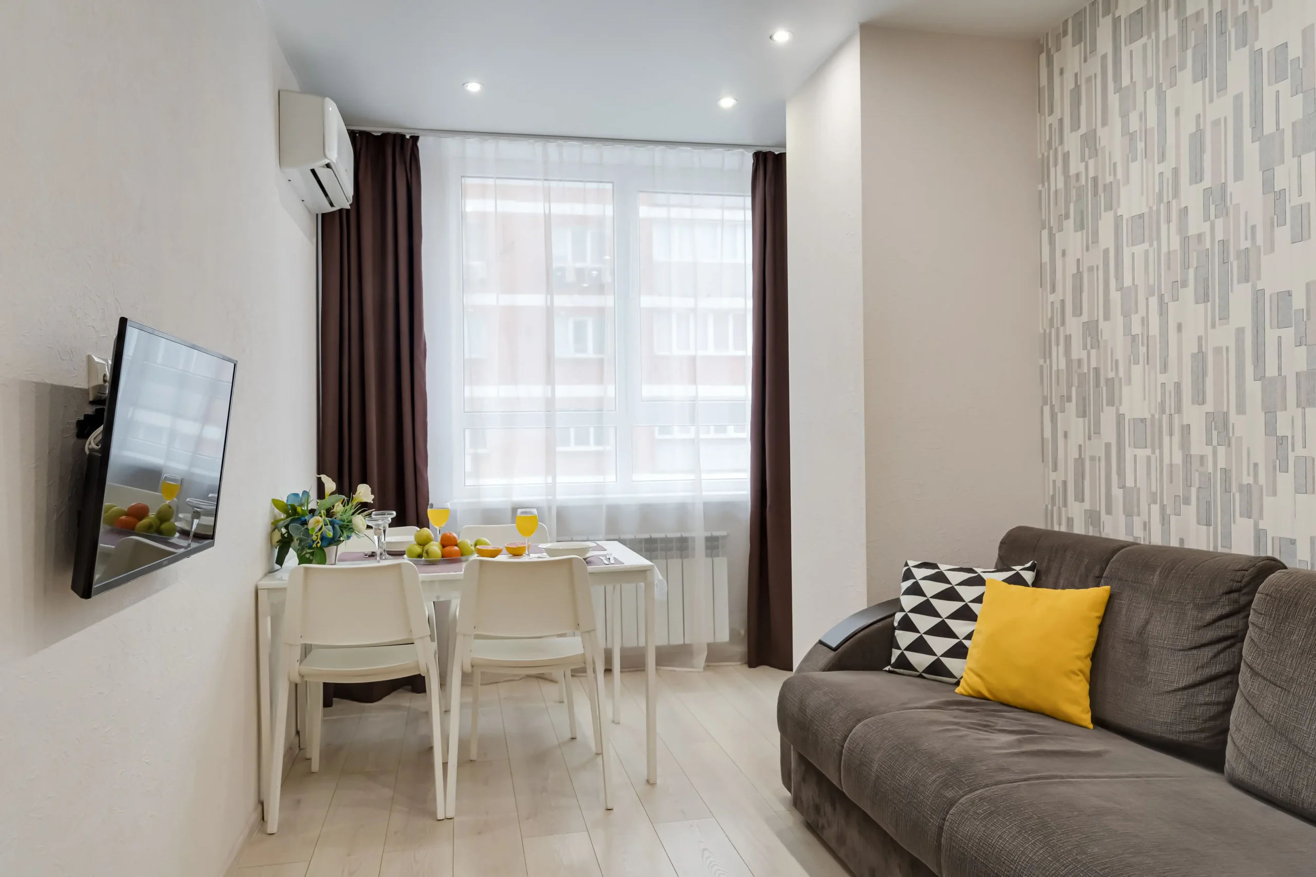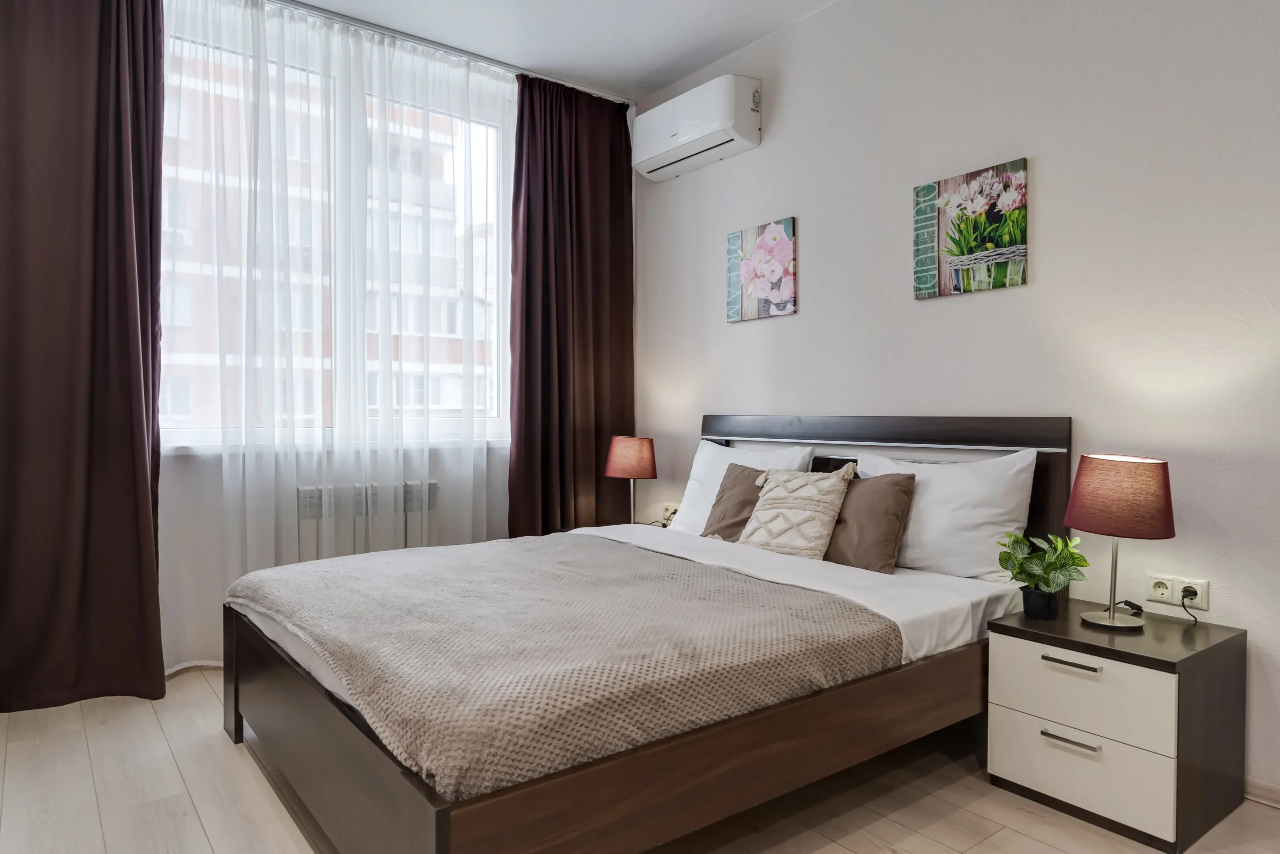 Квартира укомплектована бытовой техникой. Бесплатно предоставляется постельное белье, полотенца и средства гигиены.